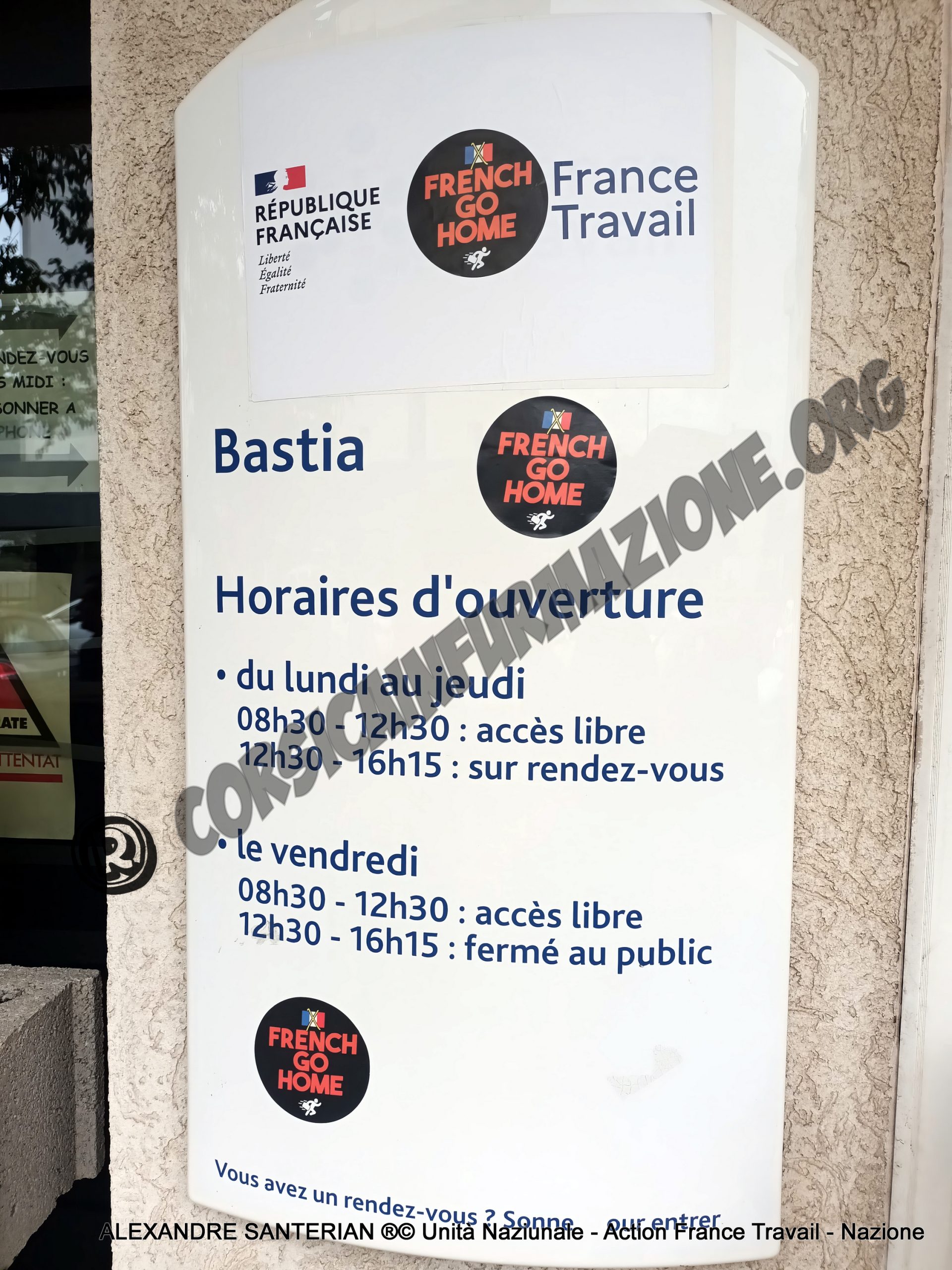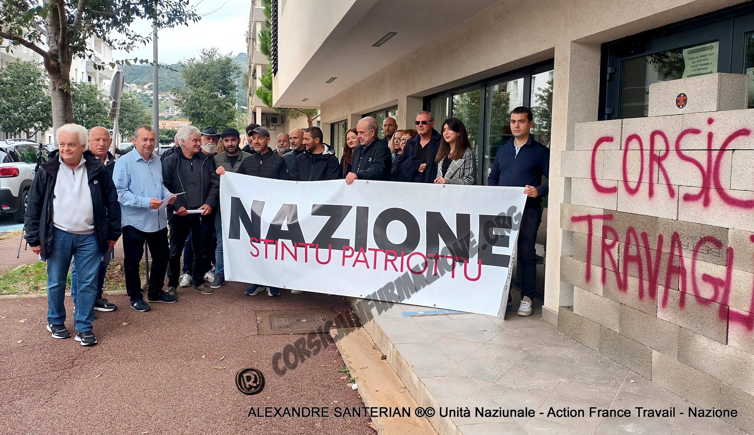 Par cette action, Nazione entend dénoncer la politique de l’emploi menée en Corse par France Travail, véritable relais institutionnel de la décorsisation des emplois.