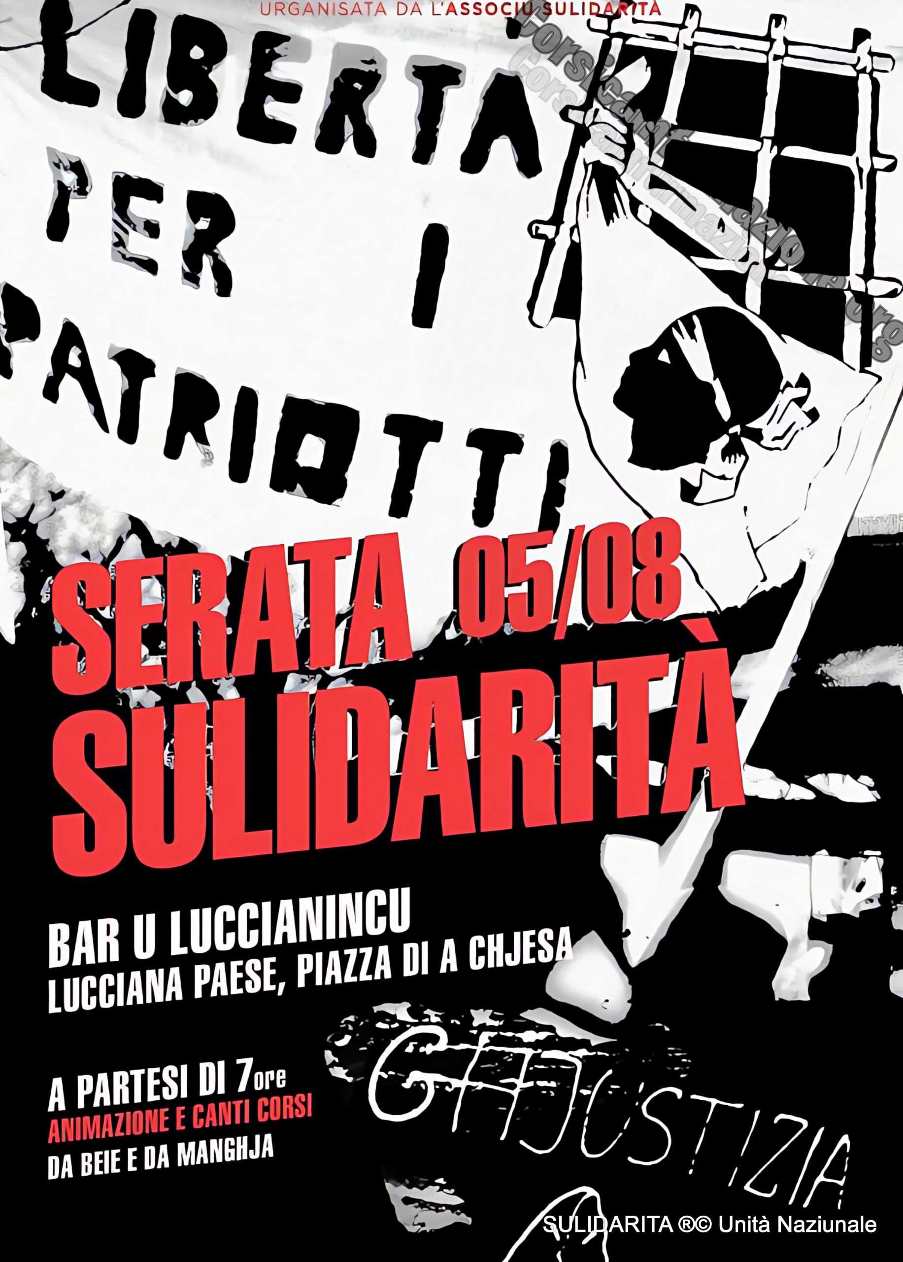 (Corsiscainfurmazione.org, Unità Naziunale, lutte de masse, publié le 30 juillet 2025) Le STC appelle à une participation massive à la soirée de soutien aux prisonniers politiques organisée par l’Associu Sulidarità, le 5 août au village de Lucciana.