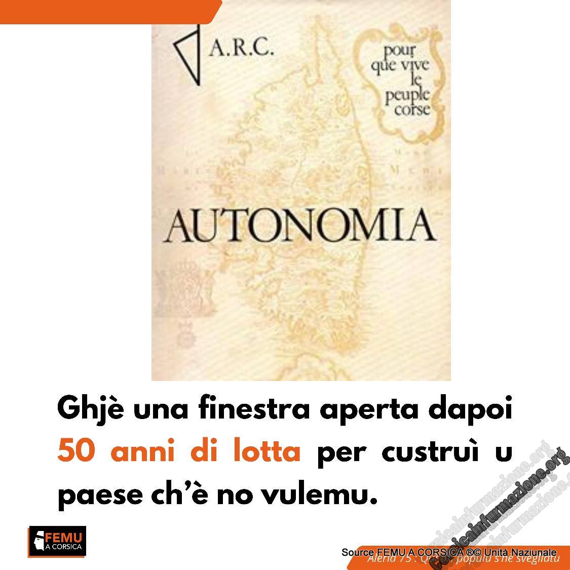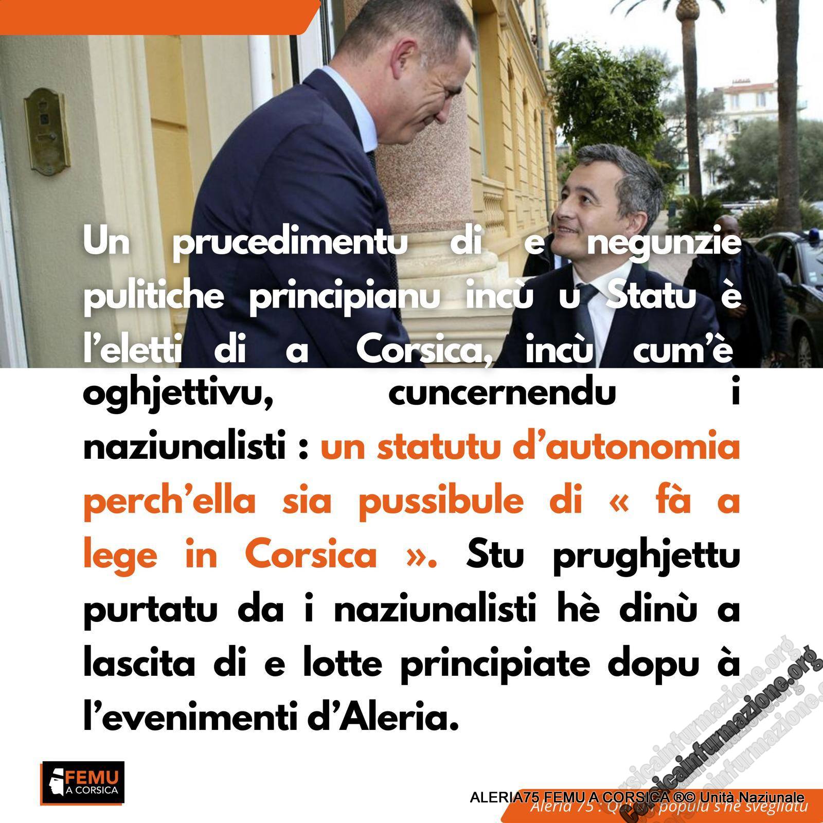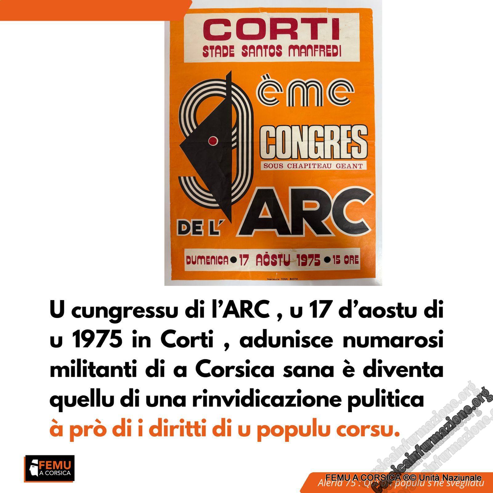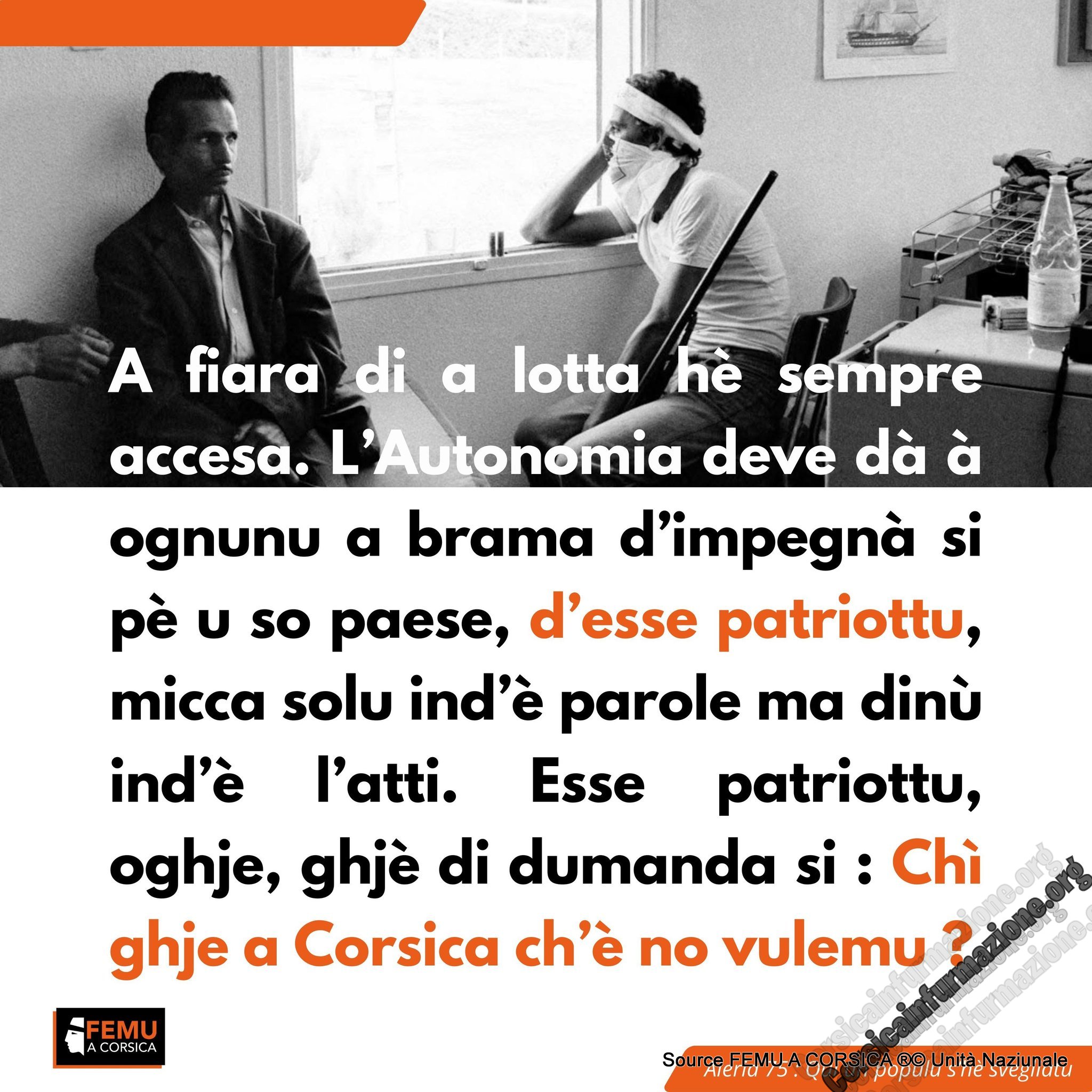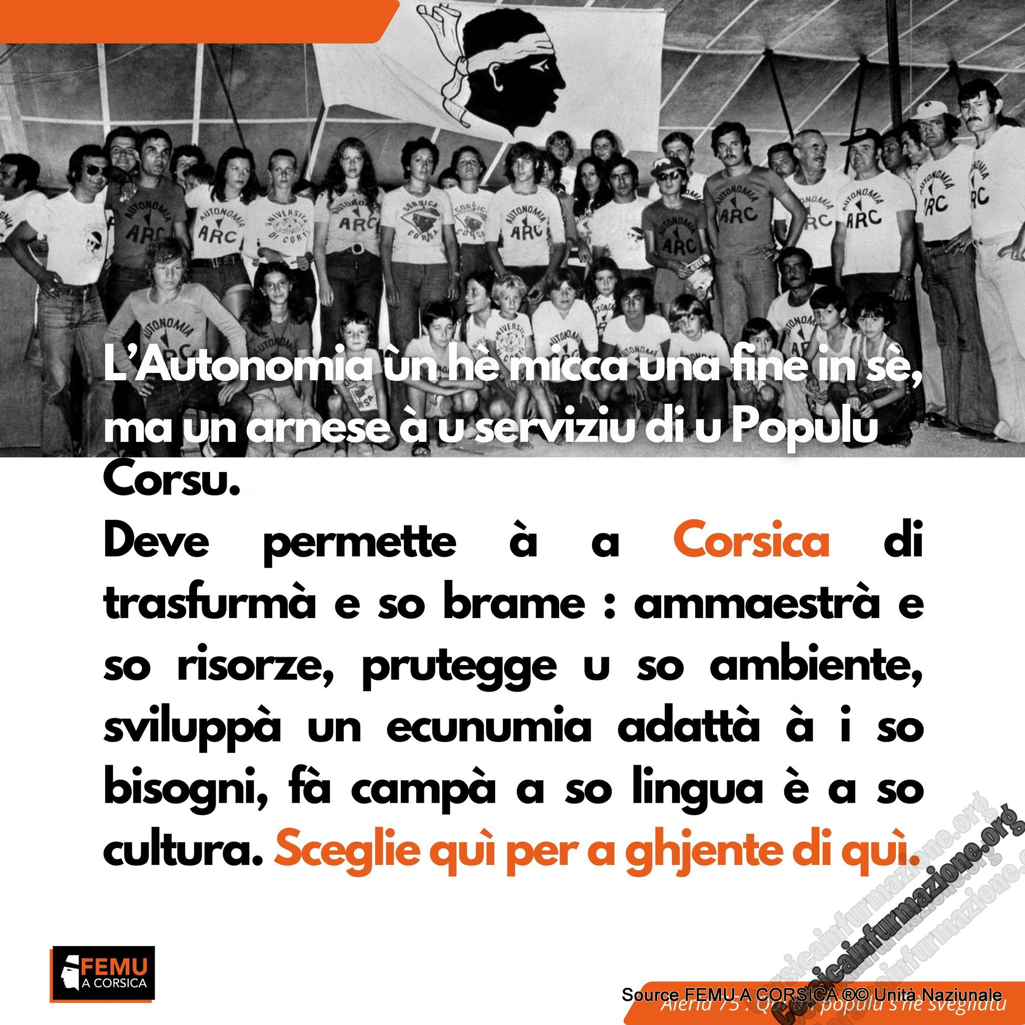 Aleria, memoria è cuscenza d’un populu ! Aleria fù, cinquant’anni fà, un avvenimentu decisivu, una scossa chì risvegliò un populu chì da troppu tempu campava in un sonnu di rivolta. Sti decennii di lotta inizianu è maturanu u fruttu di a ghjuventù militante, chì hà avutu u curagiu di fà u primu passu è di mette in i spiriti di i Corsi l’idea d’un impegnu culletivu in a Lotta di Liberazione Naziunale. Fubbenu elli, i primi, à sfidà a putenza francese nant’à a terra Corsa , terra Nostra, fendu nasce una cuscenza nova. Oghje, sta memoria ci rammenta ch’issa lotta ùn s’hè mai spenta, è chì fermanu vivi i so valori. Ùn ci vole mai à scurdà l’eroi d’eri, chì anu sacrificatu a so vita per un avvene più ghjustu è più degnu: per a Corsica Nazione. Dumane, v’invitemu à participà numarosi, à fianc’à noi e soprattuttu a fianc’à i nostri amichi di @associu_aleria75, à a cumemorazione di « i cinquant’anni d’Aleria ». Memoria viva per quelli chì anu datu tuttu à a nostra terra. O Corsu, ùn ti scurdà di a to storia, di e to radiche è di i sacrifizii chì anu custruitu a nostra dignità. A nostra cuscenza hè resistenza !