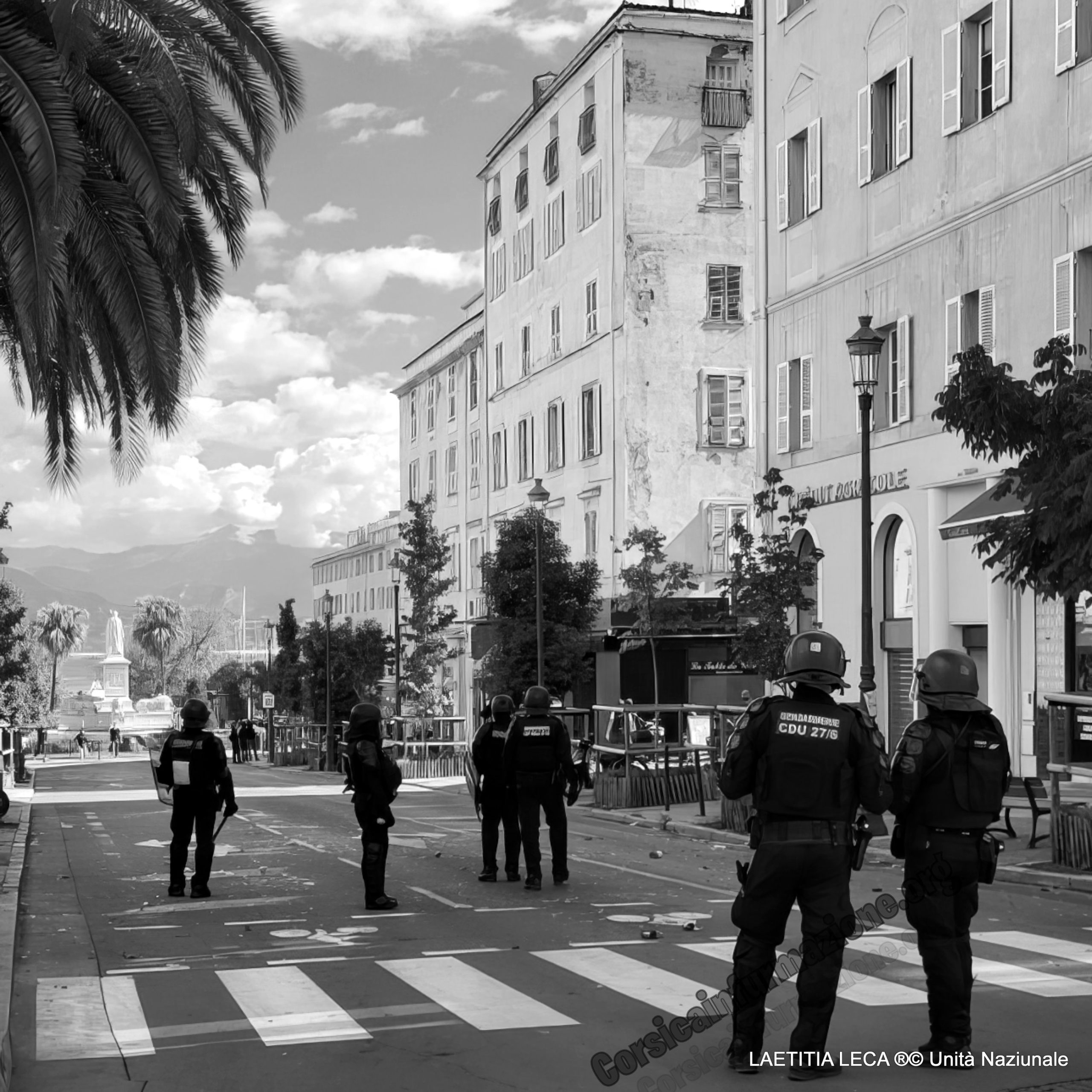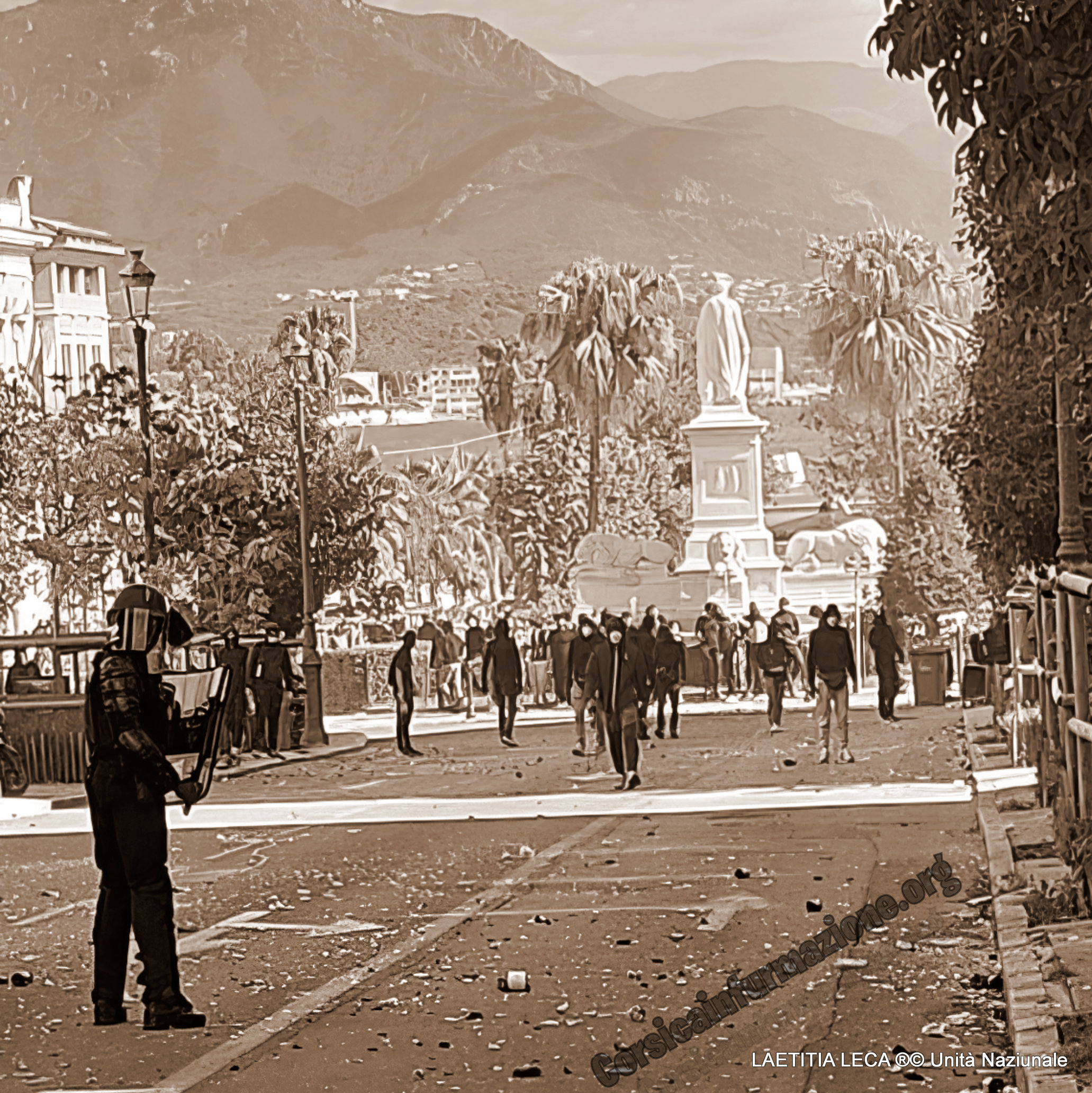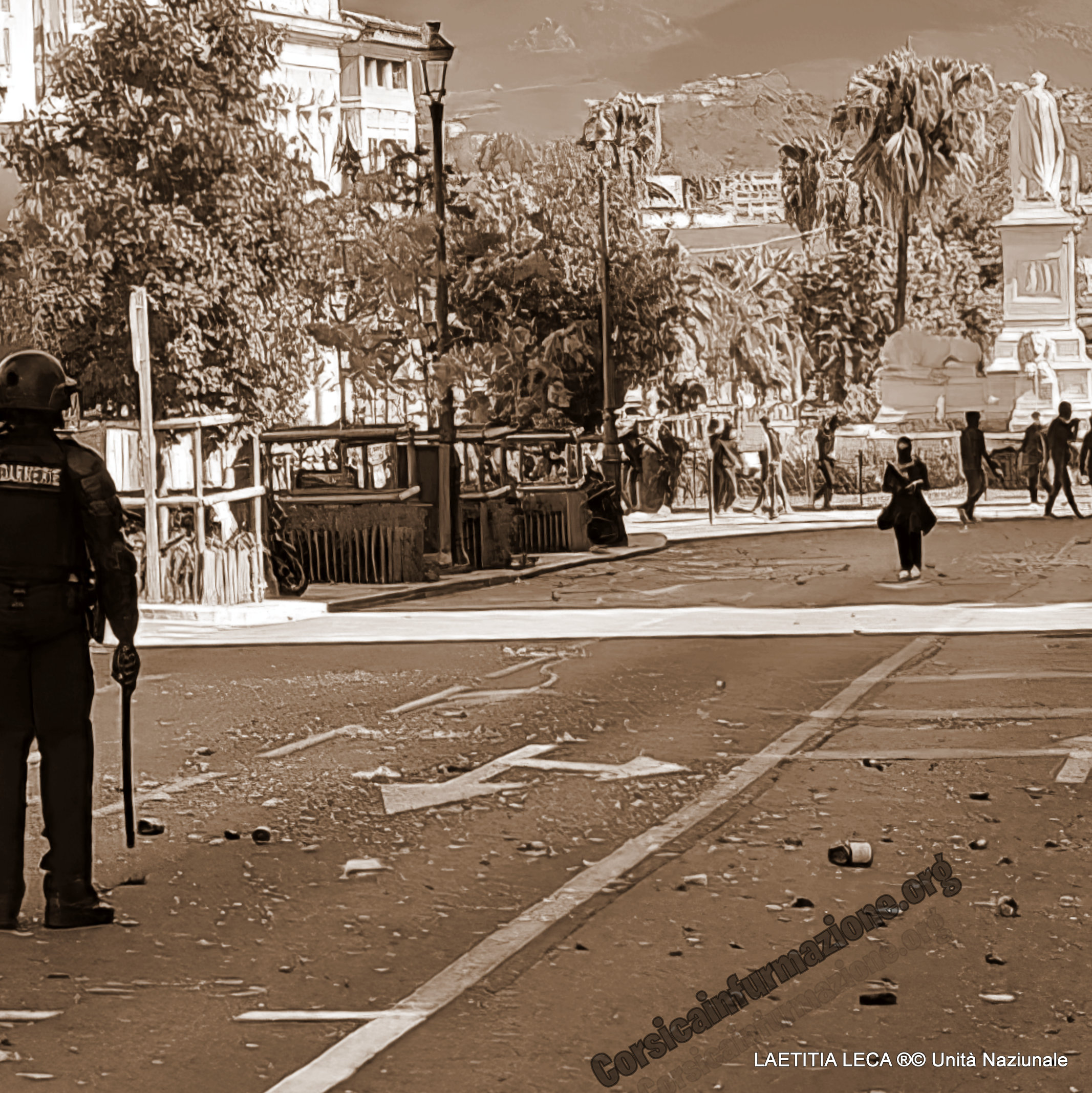 (FR3Corse du 17 octobre) Aux environs du commissariat, une altercation a opposé un groupe d’individus masqués et les forces de l’ordre. les affrontements se sont étendus, et les autorités ont bloqué une partie du centre-ville.