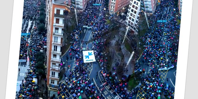 (Corsicainfurmazione.org, Unità Naziunale, Publié le 11 janvier 2026) Environ 65 000 personnes ont manifesté à Bilbao à l’appel de Sare pour exiger la fin des législations et pratiques carcérales d’exception appliquées aux prisonniers basques. Malgré une pluie intense, la mobilisation a rassemblé une foule encore plus importante que l’an dernier. Les manifestants ont dénoncé une … Lire la suite de « Sous la pluie, le peuple basque exige justice et fin de l’exception carcérale »