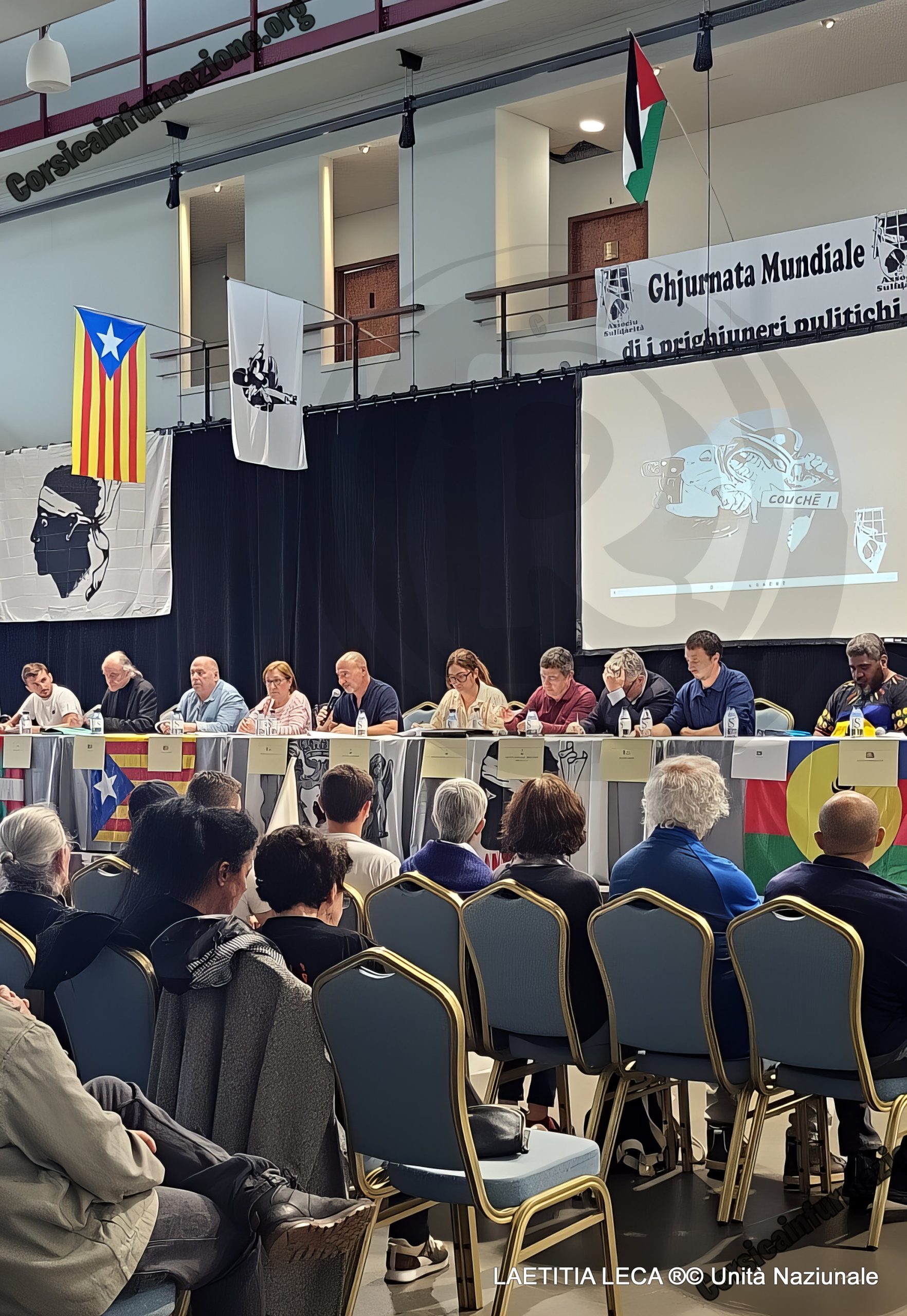 Ces deux temps forts, organisés le même jour, s’inscrivent dans une dynamique commune de dénonciation et de structuration d’une solidarité politique. À Ajaccio, la présence d’un drapeau palestinien est venue rappeler l’origine de cette journée, initiée en 1975 par les prisonniers palestiniens, avant d’être réactualisée en 2004 par plusieurs nations sans État, dont la Corse et le Pays basque. Ce symbole a renforcé la lecture internationaliste portée par les intervenants, établissant un parallèle assumé entre différentes luttes de libération nationale. Ainsi, de Bastia à Ajaccio, au-delà des formes, rassemblement et conférence, c’est une même volonté qui s’est exprimée : inscrire la question des prisonniers politiques corses dans un combat plus large, où la dénonciation de la répression s’accompagne d’un appel à la reconnaissance politique et à une solution globale.