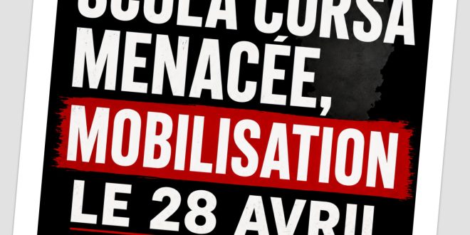(Corsicainfurmazione.org, Unità Naziunale, Publié le 25 avril 2026) Une mobilisation en soutien au réseau d’enseignement immersif Scola Corsa est annoncée mardi 28 avril à Bastia et Ajaccio, à l’appel de ses soutiens. En cause, des incertitudes sur la pérennité financière de la structure.